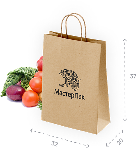 - Крученые ручки, бумажный пакет, 32*20*37 см (ш*г*в), крафт бурый 80 гр.